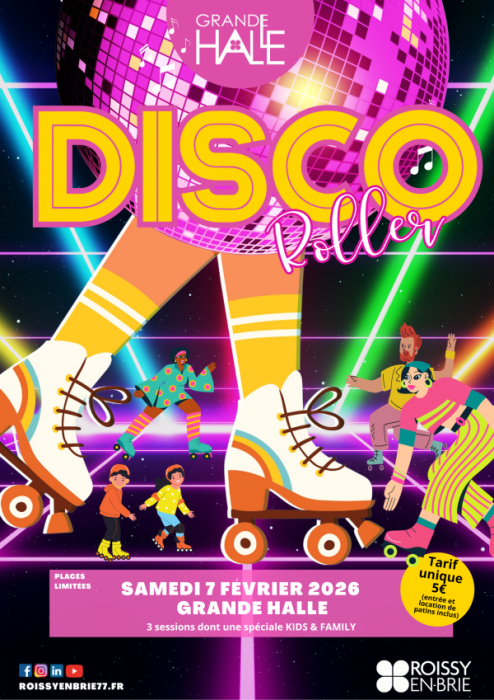 La troisième édition du Disco Roller de Roissy-en-Brie dans la grande halle, aura lieu le samedi 7 février 2026 de 16h00 à 23h30. Plus de détail sur le site https://www.roissyenbrie77.fr/disco-roller/.